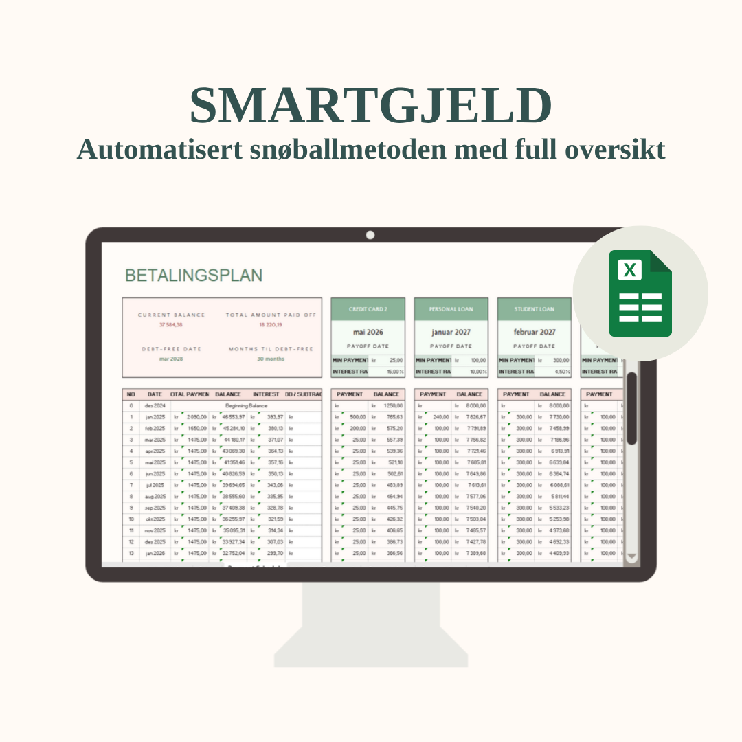 Denne versjonen av Snøballmetoden er laget for Microsoft Excel (Windows og Mac).